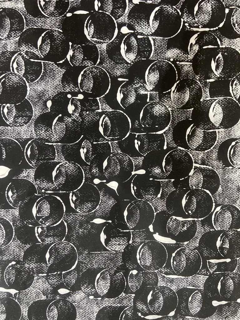 Black and white barcode with a partial, colorful, splattered paint pattern in the middle.